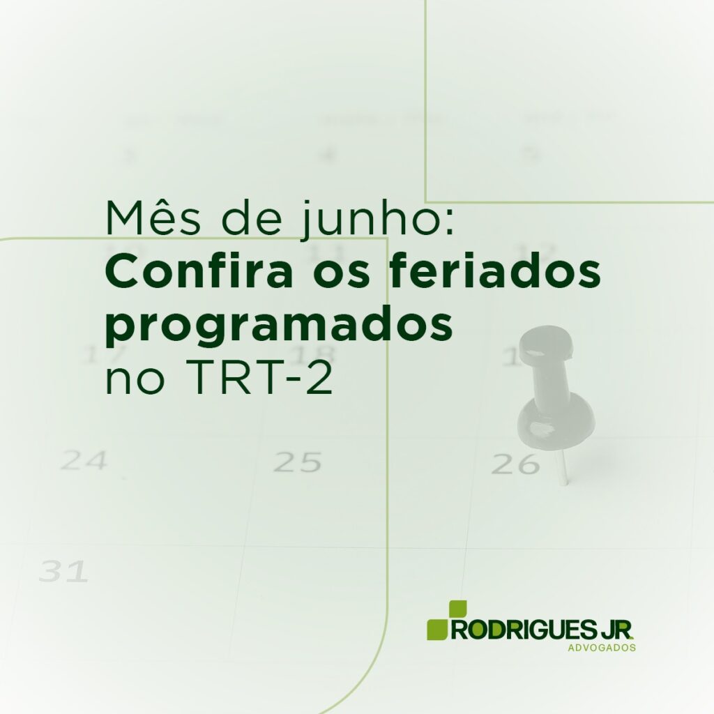 MÊS DE JUNHO: CONFIRA OS FERIADOS PROGRAMADOS NO TRT-2